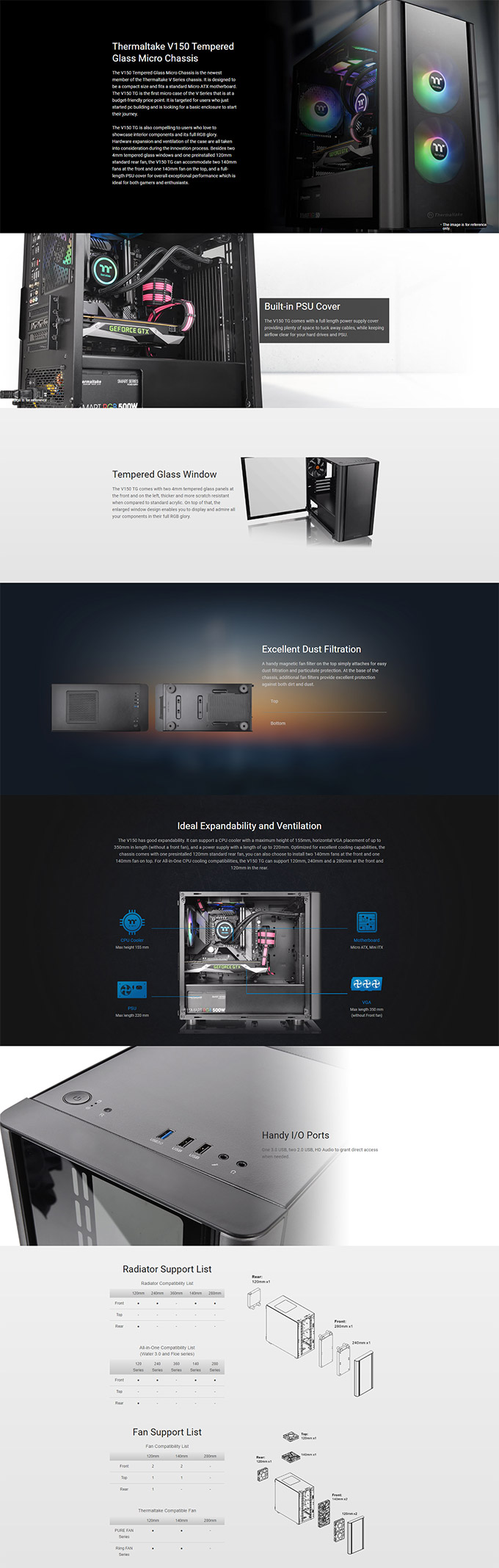 Thermaltake V150 TG táp nélküli ablakos MT Mini Tower számítógépház fekete