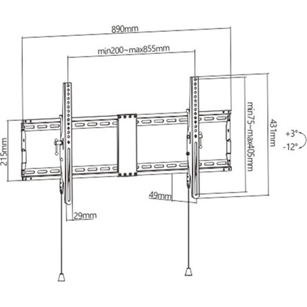43"-90", eszközök száma: 1db, mozgatás: kézi, dönthető, terhelhetőség: 70kg, VESA 200, VESA 400, VESA 600, VESA 800, faltól távolság: 49mm