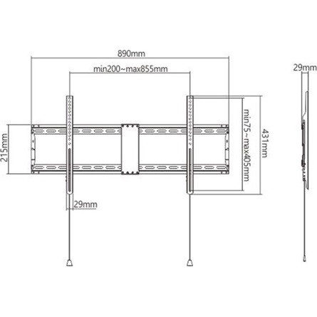 43"-90", eszközök száma: 1db, terhelhetőség: 70kg, VESA 200, VESA 400, VESA 600, VESA 800, faltól távolság: 29mm