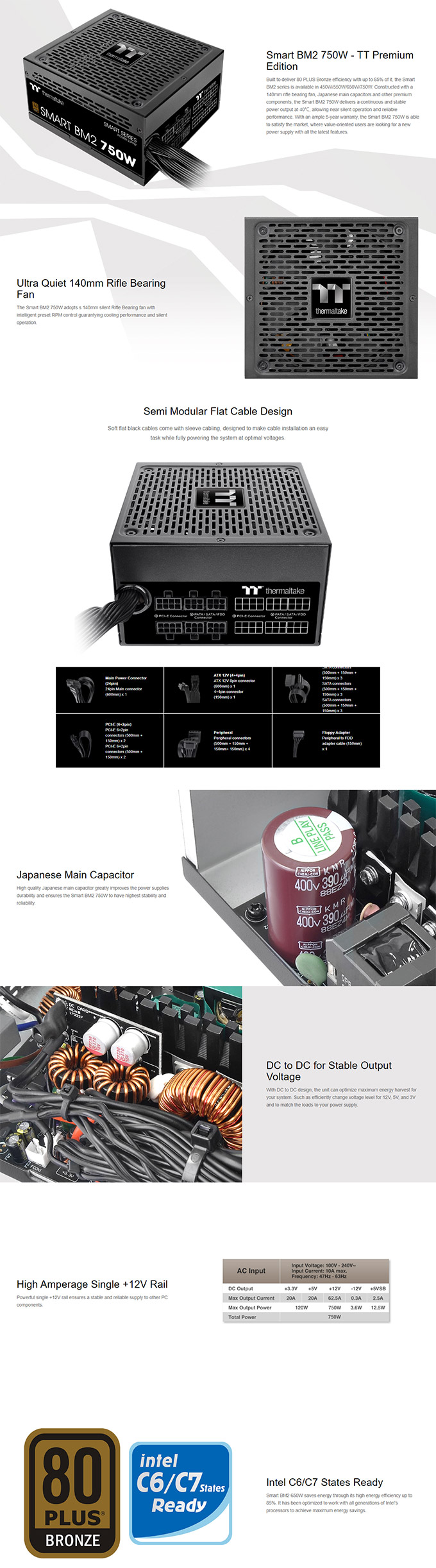 Thermaltake Smart BM2 ATX gaming tápegység 750W 80+ Bronze BOX