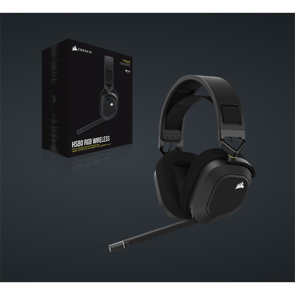 CORSAIR Vezeték Nélküli Headset, HS80 RGB WIRELESS Premium Gaming, Dolby Atmos hangzás, szürke