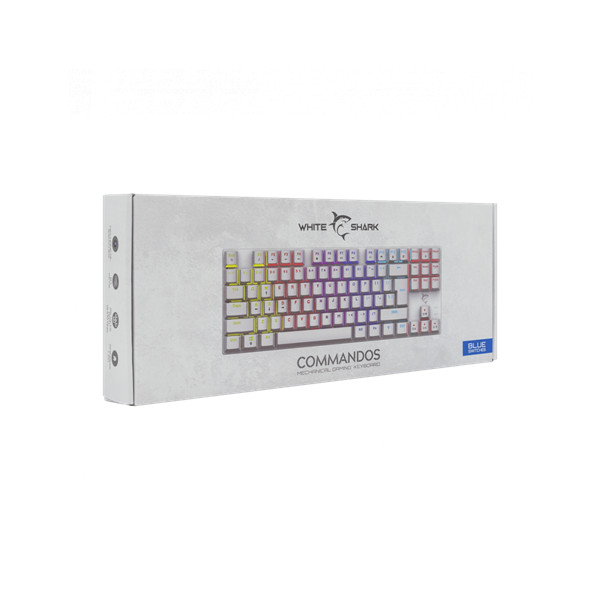 WHITE SHARK WS GK-2106W/BL-HU COMMANDOS fehér mechanikus billentyűzet, magyar, 88 kék gomb