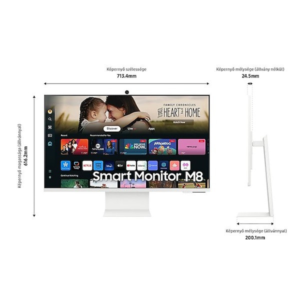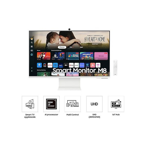 SAMSUNG SMART VA monitor 32" M8, 3840x2160, 16:9, 400cd/m2, 4ms, HDMI/2xUSB/USB-C/WiFi/BT, hangszóró/kamera, Fehér