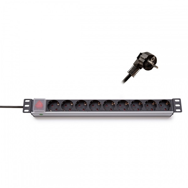 KELINE Elosztópanel 9x250V, kapcsolóval, 1U, 19", 2.5m